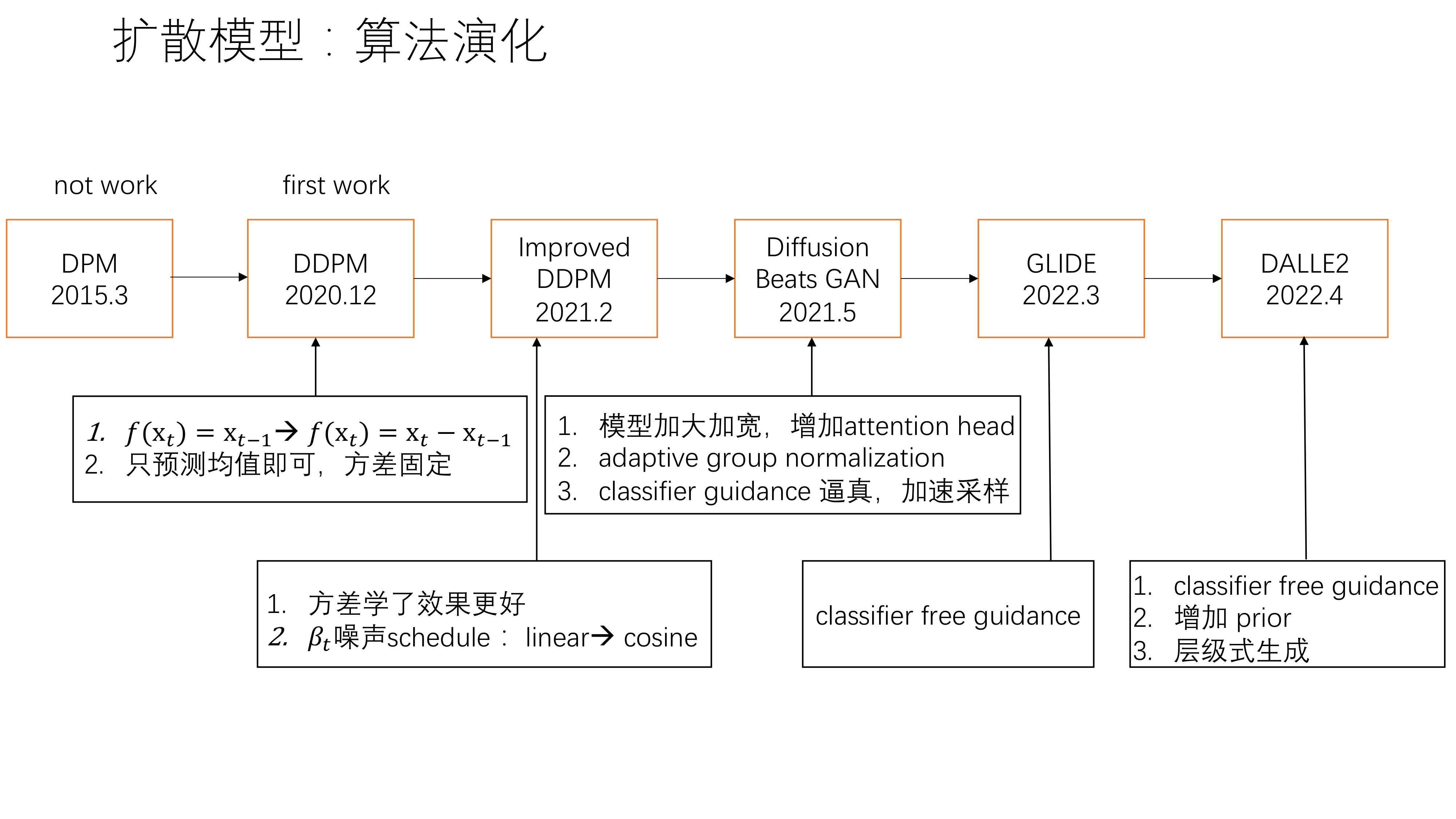 OpenAI 的文本生成模型 DALL-E 2 一经推出,就在社交媒体上引起了轰动,我当时正为即将轮到本人的团队技术分享寻找主题,分享内容可以跟自己项目毫无关系,于是我选择了分享文本生成模型 DALL-E 2,从原始论文延展到相关技术细节,读了大量论文和网络技术分享。准备这个分享时是七八月份,但因为疫情原因不断居家办公,最终在公司分享时已经到了 12 月底,ChatGPT 都已经发布了,好在最终圆满完成任务。