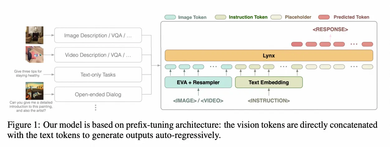 - 原理:一图胜千言,第一张图就把最重要的idea说了。就是把其他模态的信息,都可以变成Embedding,然后输入到语言模型作为中间的context,然后在和语言进行交互。 这其实也是GPT4最重要的关键。